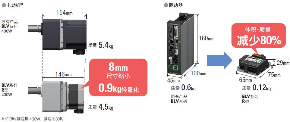 電動機、驅動器均實現了大幅度的小型、輕量化。