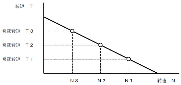 下圖為給有刷電動機施加恒壓時的轉速―轉矩特性圖。
