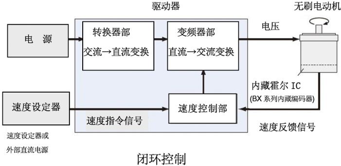 無刷電動機對電動機的反饋信號實時保持監控,與設定速度進行對比,實時調節施加電壓。因此,即使負載狀況發生變化,仍舊可以從低速到高速,以穩定的速度運行。