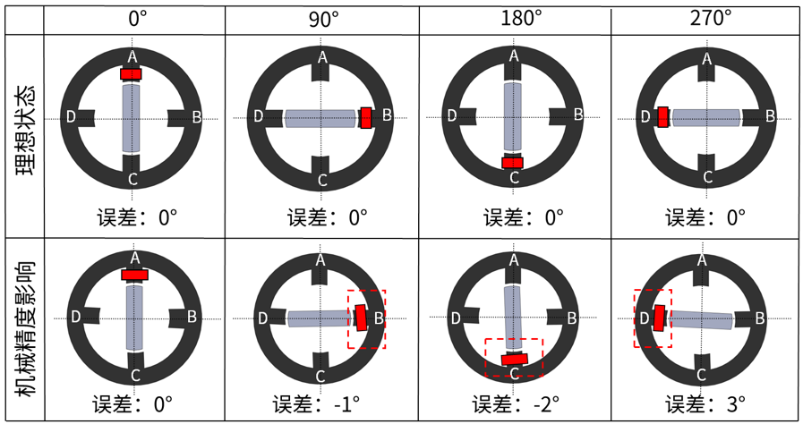 受到機械加工精度的影響,誤差將直接體現在角度的精確度上,即使是整步驅動,也會受到影響