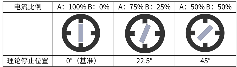 電動機的轉矩在理想情況下和電流成正比,但實際轉矩會逐漸飽和。微步驅動時,即使按理想值通過電流,電動機的轉矩會因飽和因素與理想值不成正比,從而影響牽引力,惡化靜止角度誤差。