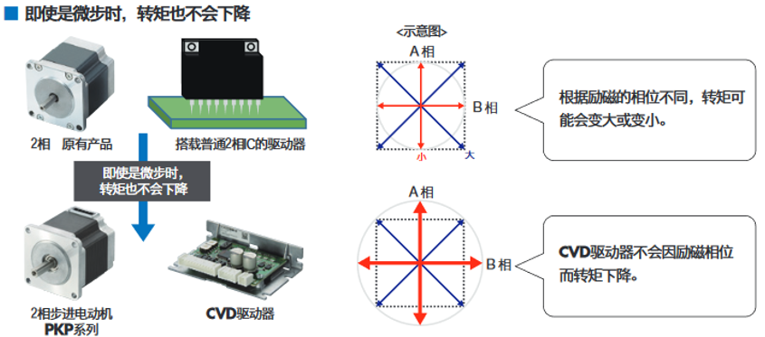 依靠5相步進電動機PKP系列與CVD驅動器的電動機的線圈優化設計,以及專用電動機驅動IC的開發,即使是微步控制下,精度也不會降低。