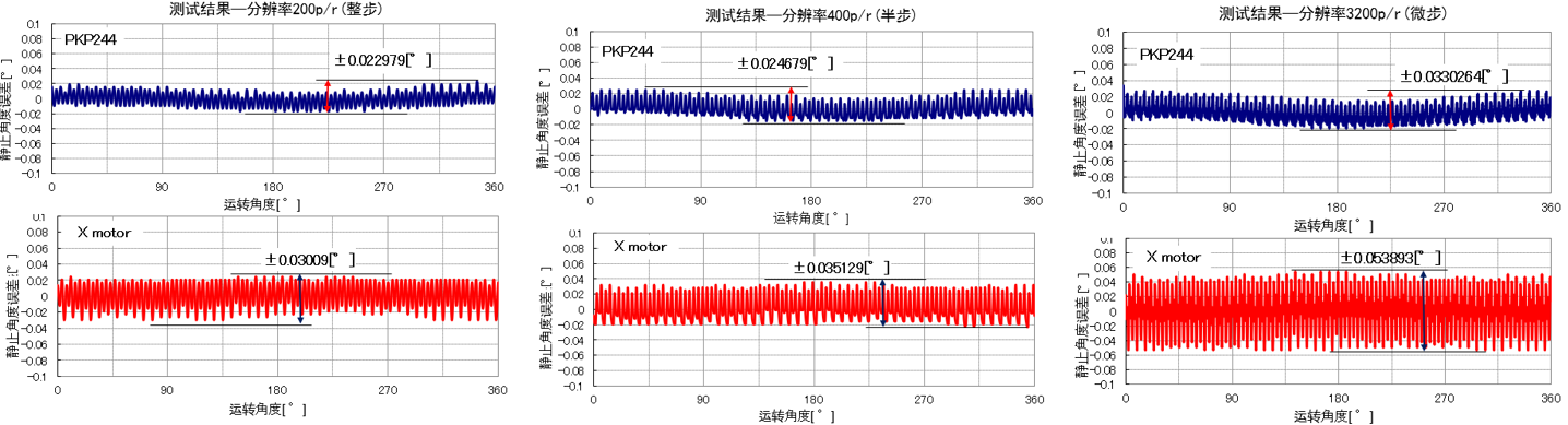 2相PKP系列步進電動機與CVD驅動器組合產品和其他公司產品細分后精度對比