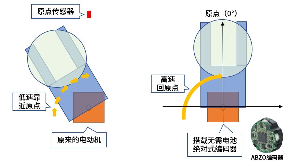 αSTEP AZ系列,借助“就近絕對移動”功能,可向指定坐標(biāo)進行180°以內(nèi)的移動,縮短了工件調(diào)整時間。