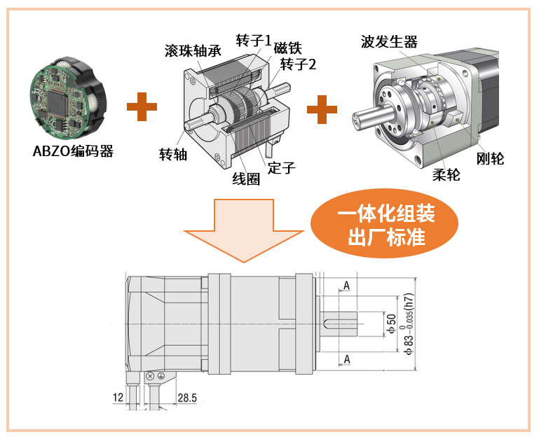 ■集減速機+步進電動機+編碼器一體化的高精密步進電動機,實現動力機構設計更小型化。