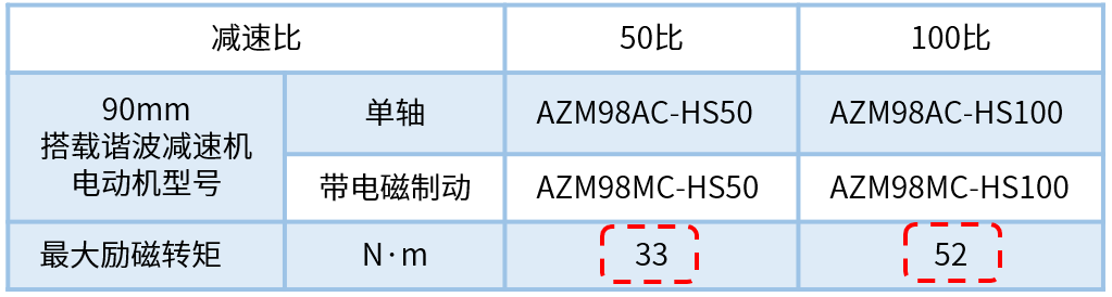 諧波減速機型安裝尺寸90mm最大勵磁轉矩: