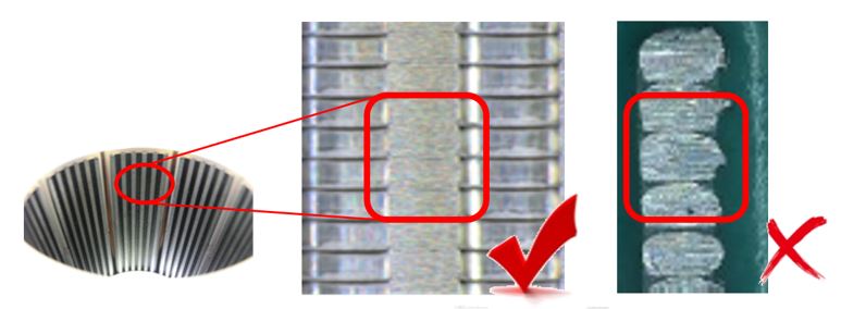 對轉子·定子上的小齒施行研磨精加工, 內部加工精度的差距對于特性表現是相當明顯。