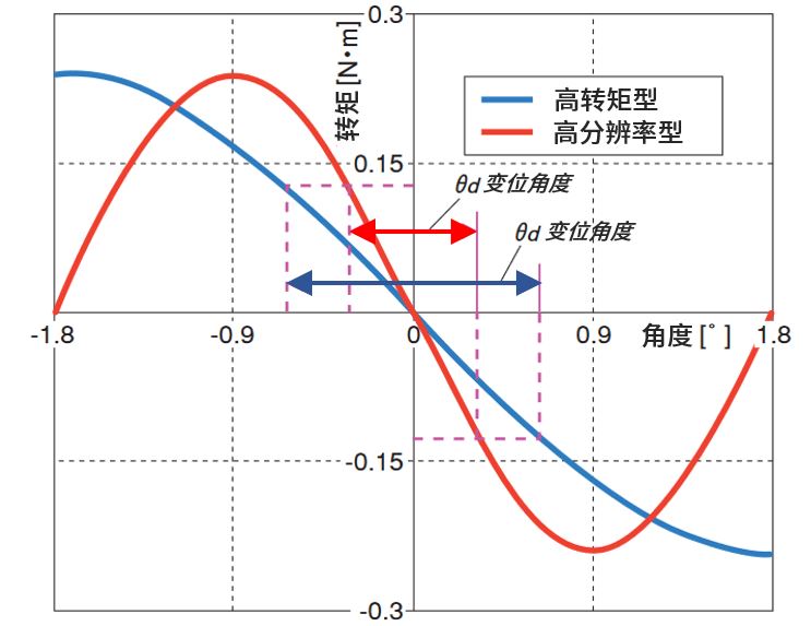轉子的齒數(shù)由標準型的50個增加到2倍的100個,基本步距角為標準型的一半0.36°。