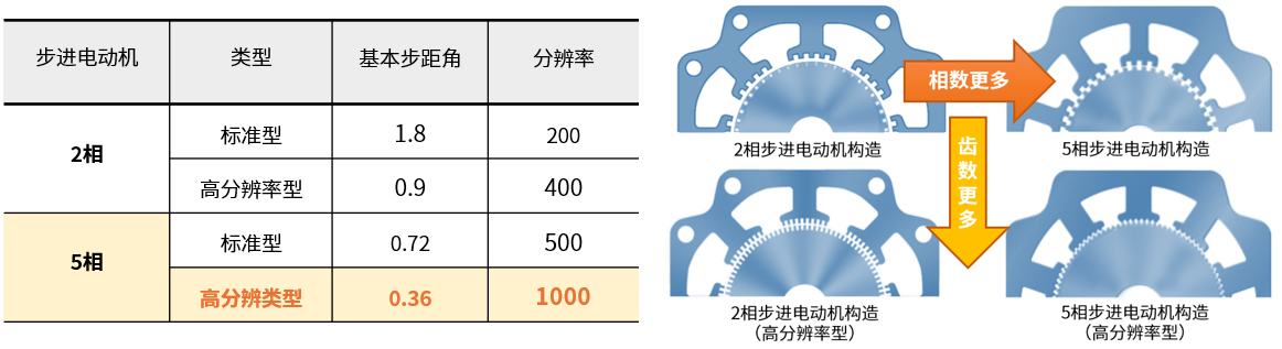 ■結(jié)構(gòu)上更小的步距,助力實(shí)現(xiàn)停止精度更高◇ 分辨率提升