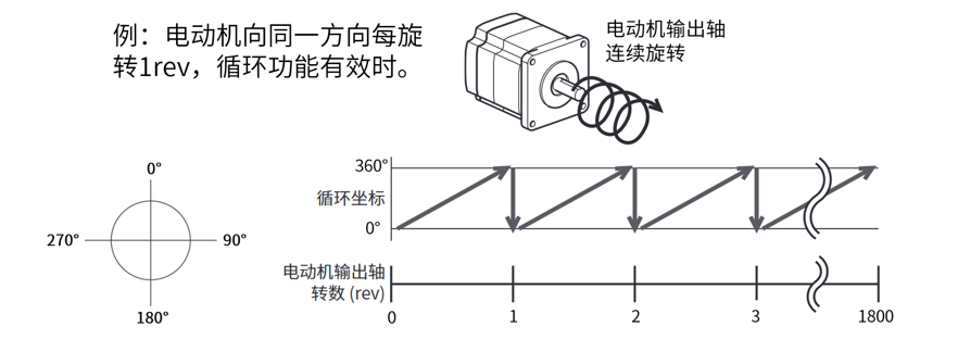 循環(huán)功能是在電動機輸出軸的轉(zhuǎn)數(shù)超出設(shè)定的范圍時,自動預置當前位置的位置信息的功能。