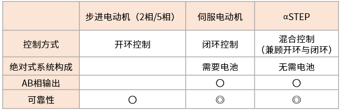 步進電動機、伺服電動機與αSTEP AZ系列的構造和驅動原理,可以總結如下表所示。