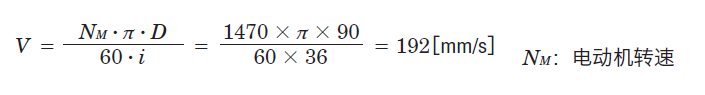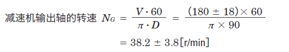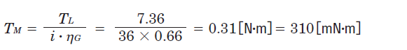 因此,將電動機更改為大一號的5IK60GE-AW2J,減速機則變更為5GE36S。在此情況下,公式為: