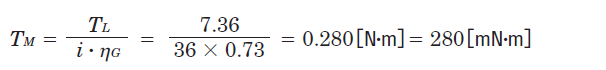 通過將負載轉矩換算為電動機出力軸的值,算出必要轉矩TM。