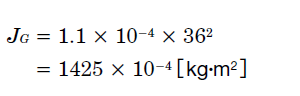 此處減速比為36的減速機5GE36S的容許轉動慣量JG,使用以下數值。