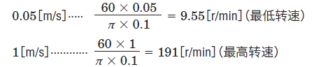 減速機的減速比請參照的輸出軸轉速表,選擇速度范圍為5.4∼266的[15],以使最低轉速與最高轉速均在速度范圍之內。