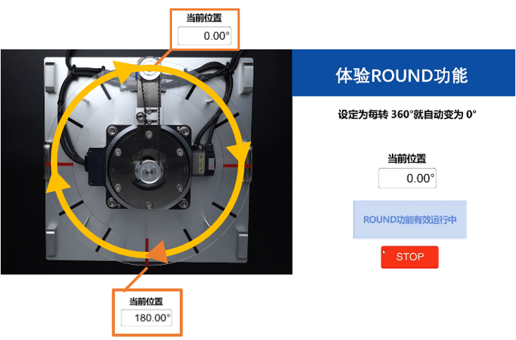 DGⅡ系列的ROUND功能可自動重置當前位置數值,實現無限多圈旋轉運行。